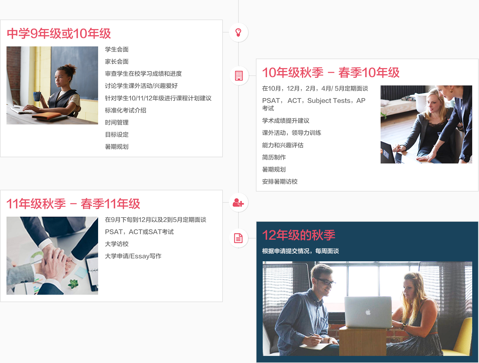 在整个大学申请过程中,我们将针对每个阶段需要准备的关键材料给予专业指导和协助